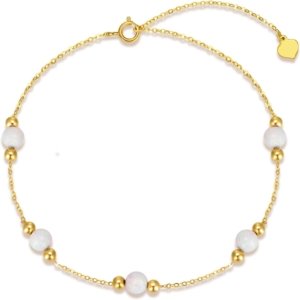 14K Real Gold Opal Anklet for Women, Yellow Gold Simulated White Opal Anklets Bracelets for Women Beach Foot Jewelry Birthday Christmas Gifts for Her Wife Girlfriend, 8+1.5 Inch