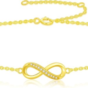 14K Real Gold Infinity Anklet for Women, Yellow Gold Infinity Anklets Bracelets with Moissanite Beach Foot Jewelry Birthday Christmas Gifts for Mom Wife Girlfriends, 8-10 Inches