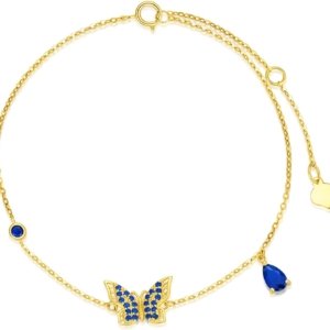 14k Gold Blue Butterfly Anklet for Women, Real 14 Carat Gold Jewelry Ankle Bracelet Gifts for Animal Lover, 9.4"-11"