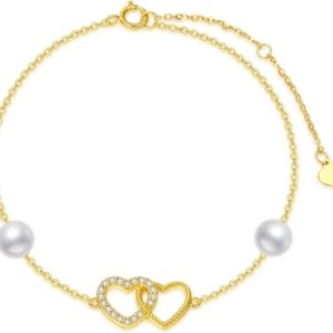 10k Gold Created Moissanite Double Heart Anklets for Women, love Ankle Bracelet Jewelry Gifts for Her, 9.4"+0.8"+0.8"