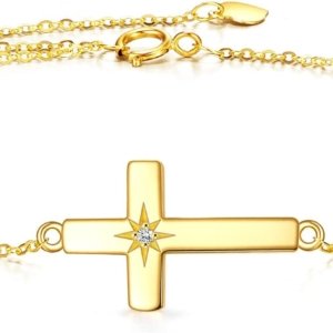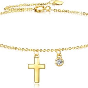 14k Gold Cross Ankle Bracelets Yellow Gold Religious Cross Anklets Fine Gold Adjustable Link Chain Anklet Jewellery Christmas Gifts for Women