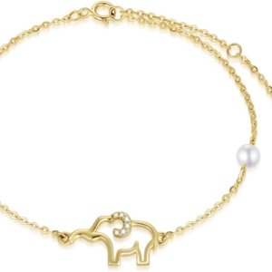 10k Gold Diamond Elephant Anklet for Women, Lucky Jewelry Ankle Bracelets Gifts for Sister/Wife, Present for Her, 8.6"+0.8"+0.8"