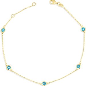 14K Yellow Evil Eye Enamel Protection Anklet 10"