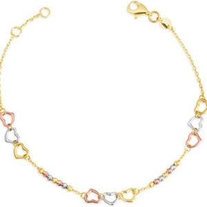 14K Tri-Tone Gold Heart Bead Anklet 10"