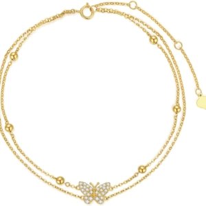 Solid 14K Gold butterfly anklet bracelets for Women, Real Gold Layered Beach Foot Anklets for Women Fine Jewelry Anniversary Birthday Gift for Wife, Mom, 8''+2''
