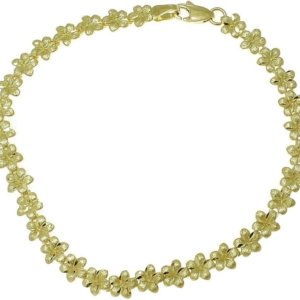 14K solid yellow gold Hawaiian plumeria flower anklet 5.5mm 10"