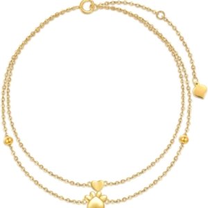 Solid 14K Gold Layered Anklet for Women, Real Gold Dog Paw Print Anklet Bracelet Foot Bracelet Fine Jewelry Anniversary Birthday Gifts for Her, Wife, Mom, 8''+2''
