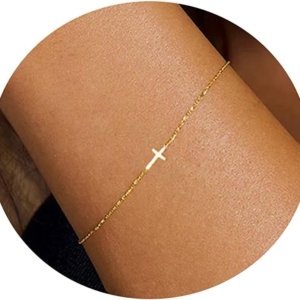 18K Gold Plated Pearl Beaded Cross Bracelets for Women Adjustable Stainless Steel Dainty Thin Gold Box Cuban Twisted Link Chain Bracelet Bridesmaid Jewelry Christmas Gifts