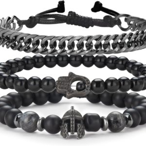 3pc Mens Beaded Bracelets Silver Stainless Steel Chain Bracelet for Men Handmade Braided Bracelet Sets Jewelry Gifts for Men