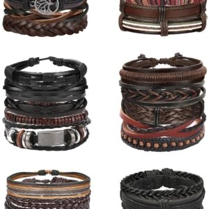 31 Pcs Braided Leather Bracelets for Men Women Wooden Beads Cool Hemp Tribal Wristbands Cuff Punk Multilayered Bracelets