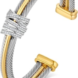 Twisted Cable Wire Cuff Bracelet for Women Gold Silver Two Tone Cuff Bracelets Mixed Metal Statement Bracelet Adjustable