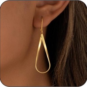 14K Gold Plated Dangle Earrings for Women,Trendy Leverback Drop Dangle Earrings Twisted Spiral Teardrop Rhombus Heart Dangle Earring for Women Dainty Fashion Jewelry Gifts