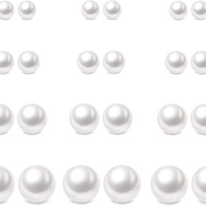 12 Pairs Pearl Stu Earrings for Women, Stainless Steel Hypoallergenic White Faux Simulated Pearl Earrings, 4 Mixed Sizes Round Ball for Wedding Birthday Christmas