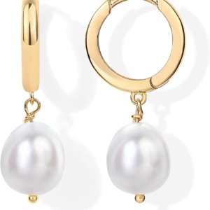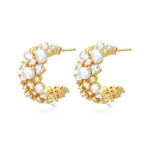 14K Gold Plated Pearl Hoop Cubic Zirconia Wedding Earrings for Bride and Bridesmai White Pearl Circle Earrings for Women