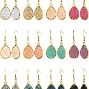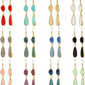 12 Pairs Teardrop Druse Crystal Drop Dangle Earrings for Women Cubic Zirconia Hoop Earring Jewelry Set Christmas Gifts