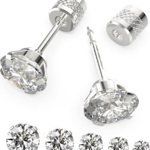6 Pairs Stainless Steel Stud Earrings Set Hypoallergenic Cubic Zirconia 14K White Gold 316L Earrings
