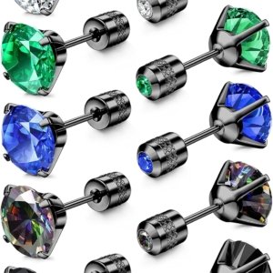 6 Pairs Stainless Steel CZ Stud Earrings for Women Mens Hoop Earrings Ear Piercing