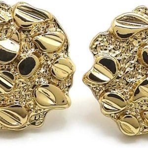 Unisex Rough Textured Cookie Nugget Stud Pierced Earring in Gold Tone