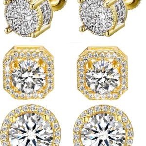 Stud Earrings for Men,18K White Gold Plated Round Square Cubic Zirconia Hypoallergenic Studs Earrings Set for Women