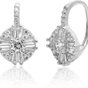 Women Earrings - 925 Sterling Silver Brilliant Crystal Cluster Drop Dangle Earrings