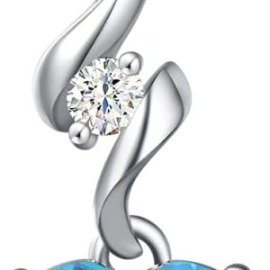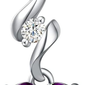 14K Solid White Gold Diamond Gemstone Pendant with Sterling Silver Chain 8mm Heart Birthstone Necklace Fine Jewelry Anniversary Birthday Gifts for Women Mom Wife