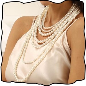 Round Imitation Pearl Necklace Vintage Multi Strands Necklace 20s Flapper Necklace for Party