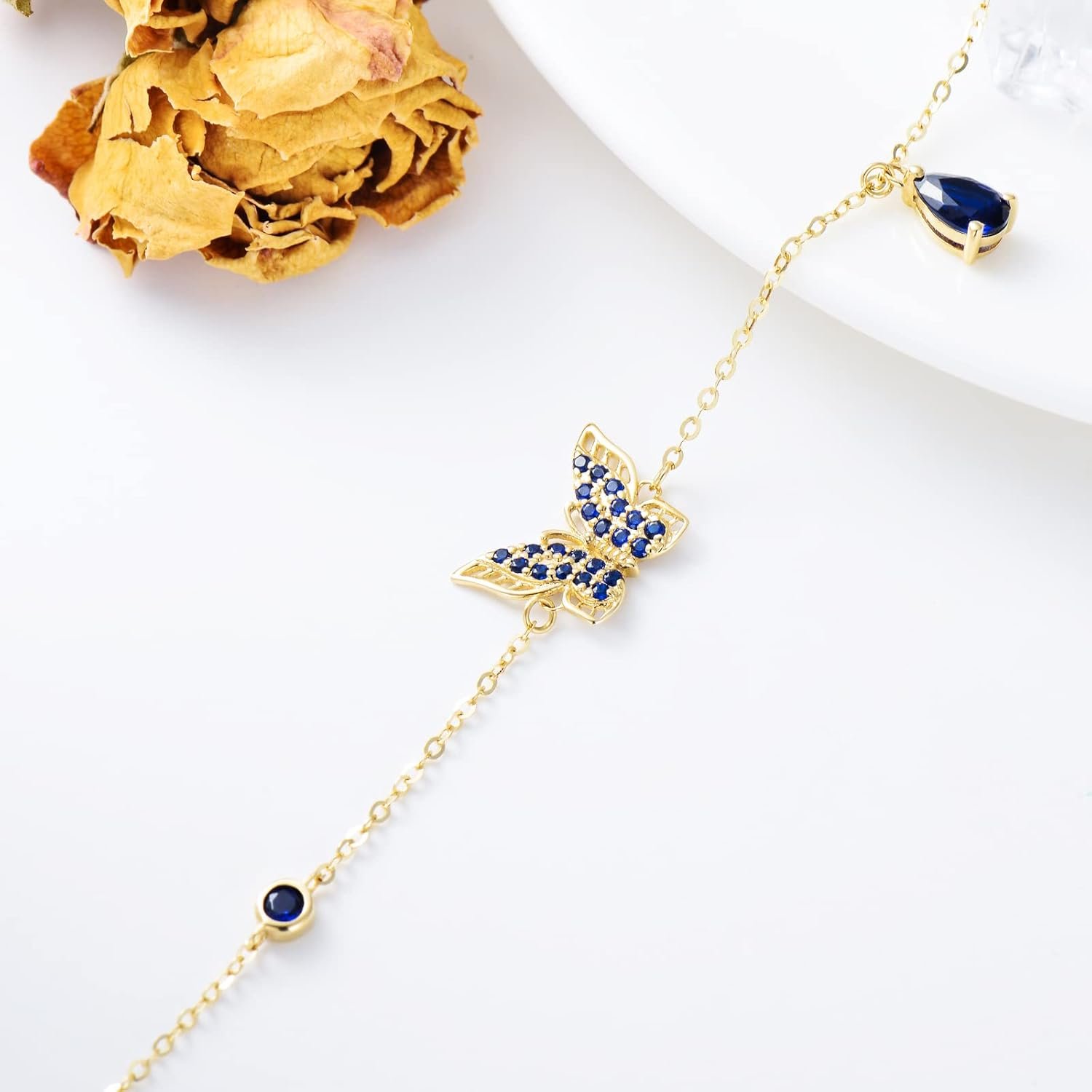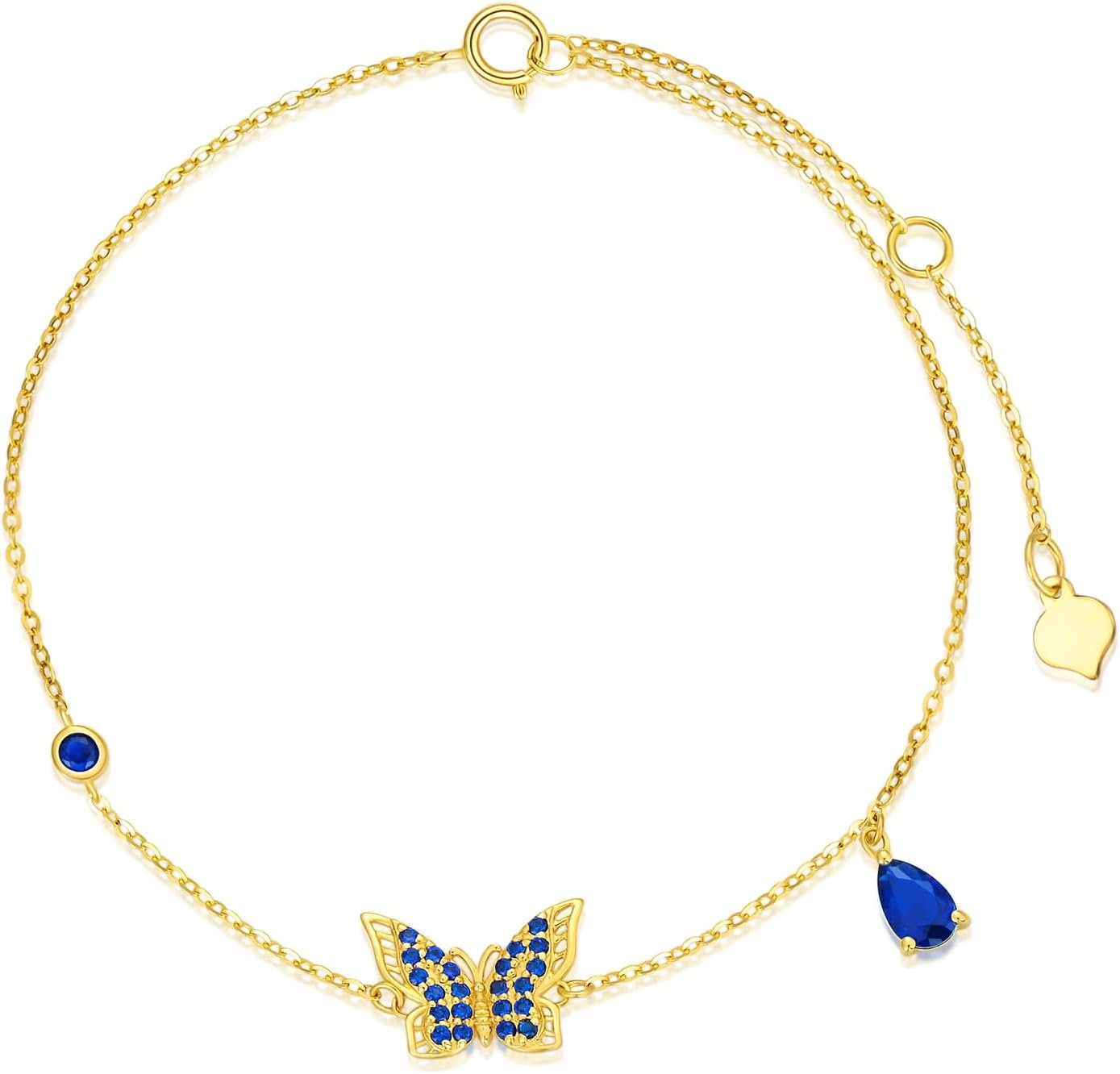 - 【Design】 A flying elegant blue butterfly with shiny blue stones inlaid on its wings, this dainty gold anklet represents the pursuit of elegance and beauty. It would make you look charming.