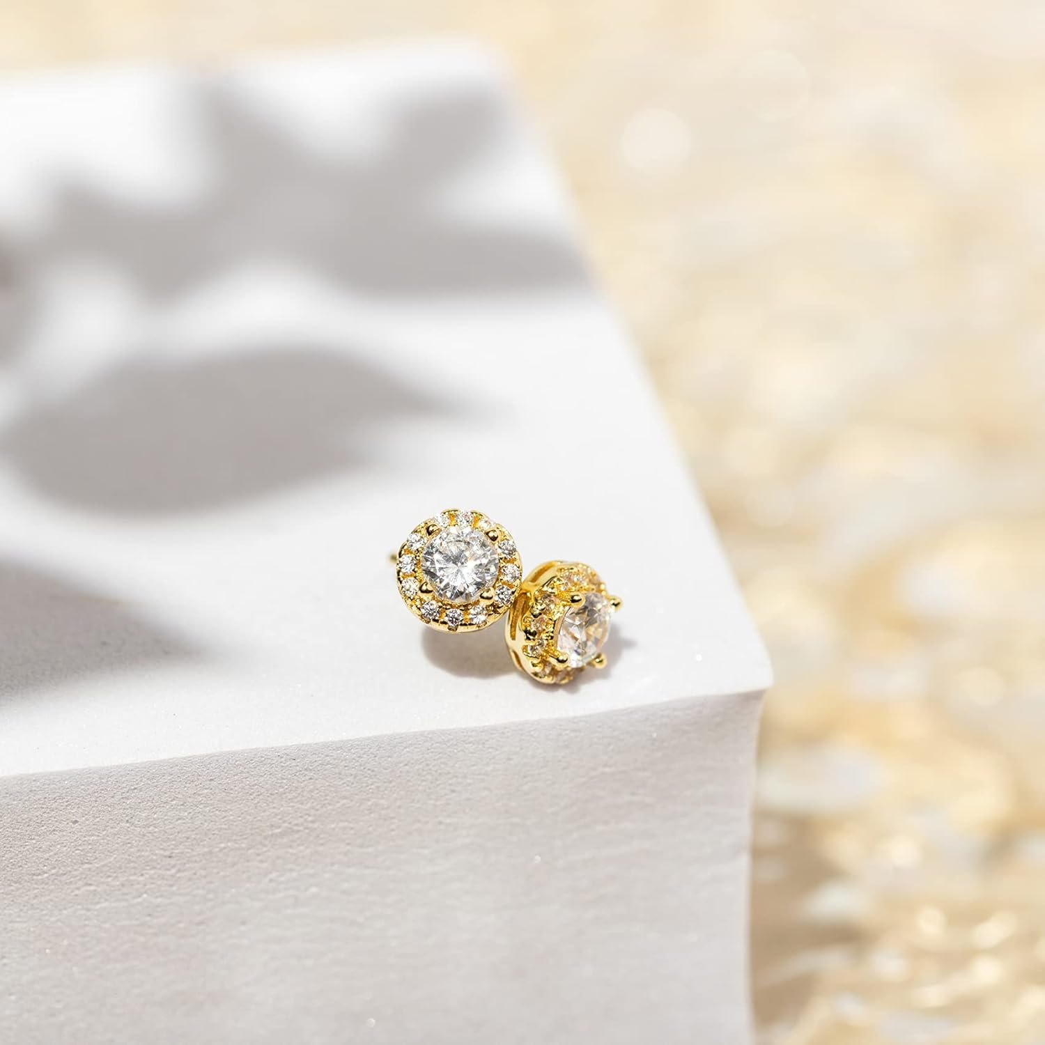 - CLASSIC FAUX DIAMOND MINI STUDS These dainty faux diamond studs are classic earrings for any woman. Simple, sophisticated and classy round stone encircled by Cubic Zirconia halo add elegance that dress up your daily wardrobe or evening wear. The faux diamonds add just the right amount of sparkle. Total measures 6.35 mm (0.25 inches) in diameter with 24 stone settings.