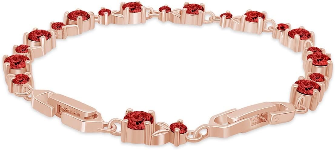 - Adds A Touch Of Nature-Inspired Beauty To Your Leaf Shape Tennis Bracelet 14k Rose Gold Over Sterling Silver “7.25”Makes a Standout Addition to Your Collection with Round Shape Simulated Garnet