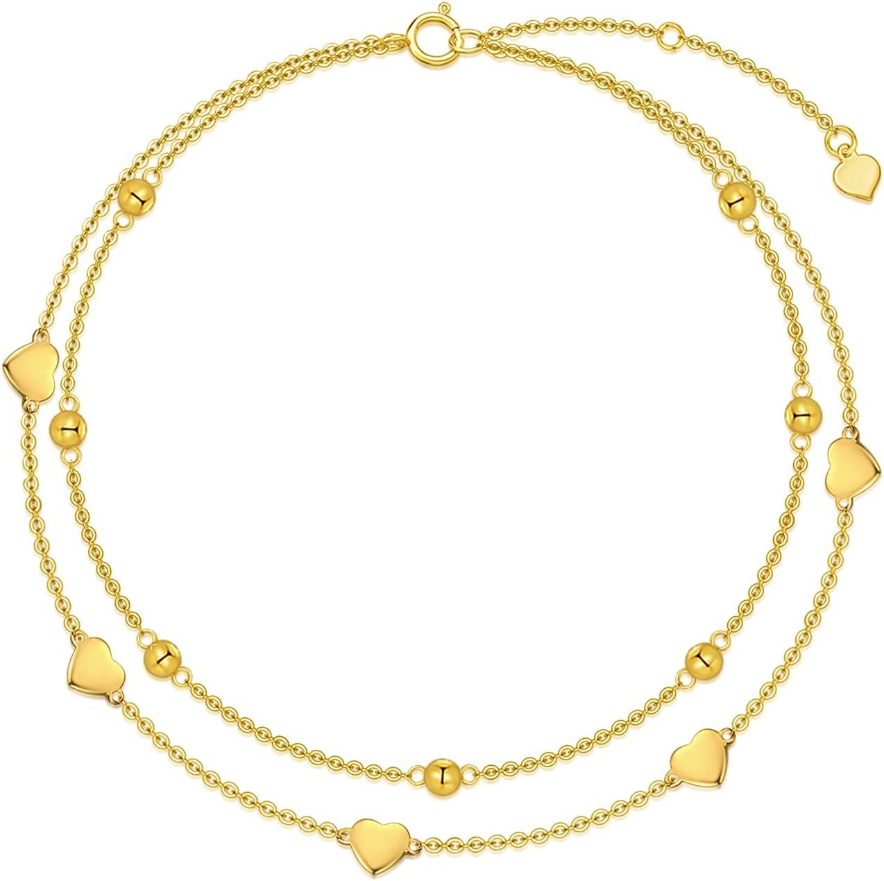 - 14k Gold Layered Anklet: 14k gold heart anklet crafted in 14k gold , nickel-free, lead-free,hypoallergenic and cadmium-free , fit for sensitive skin.