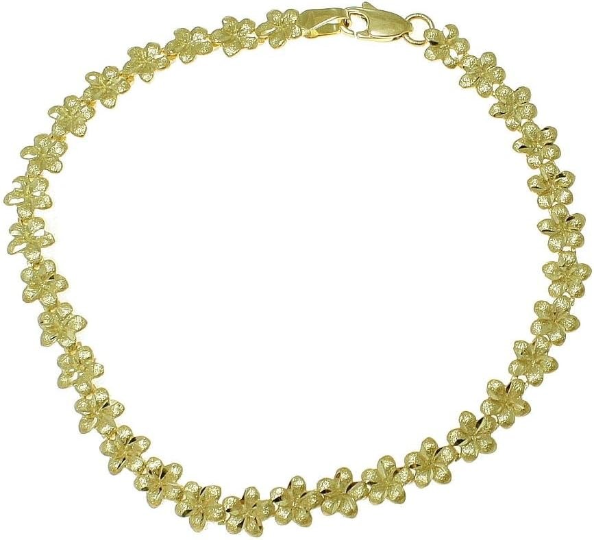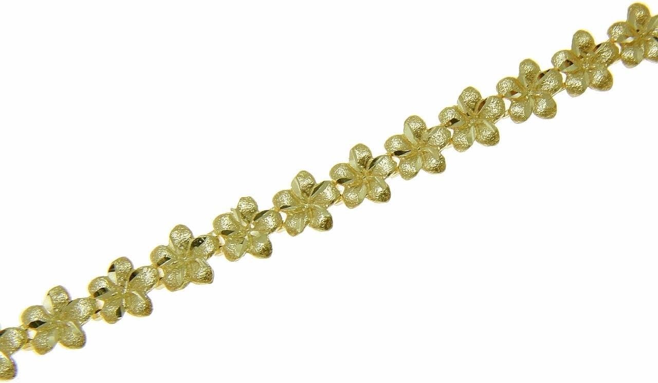 14K solid yellow gold Hawaiian plumeria flower anklet 5.5mm 10" quantity