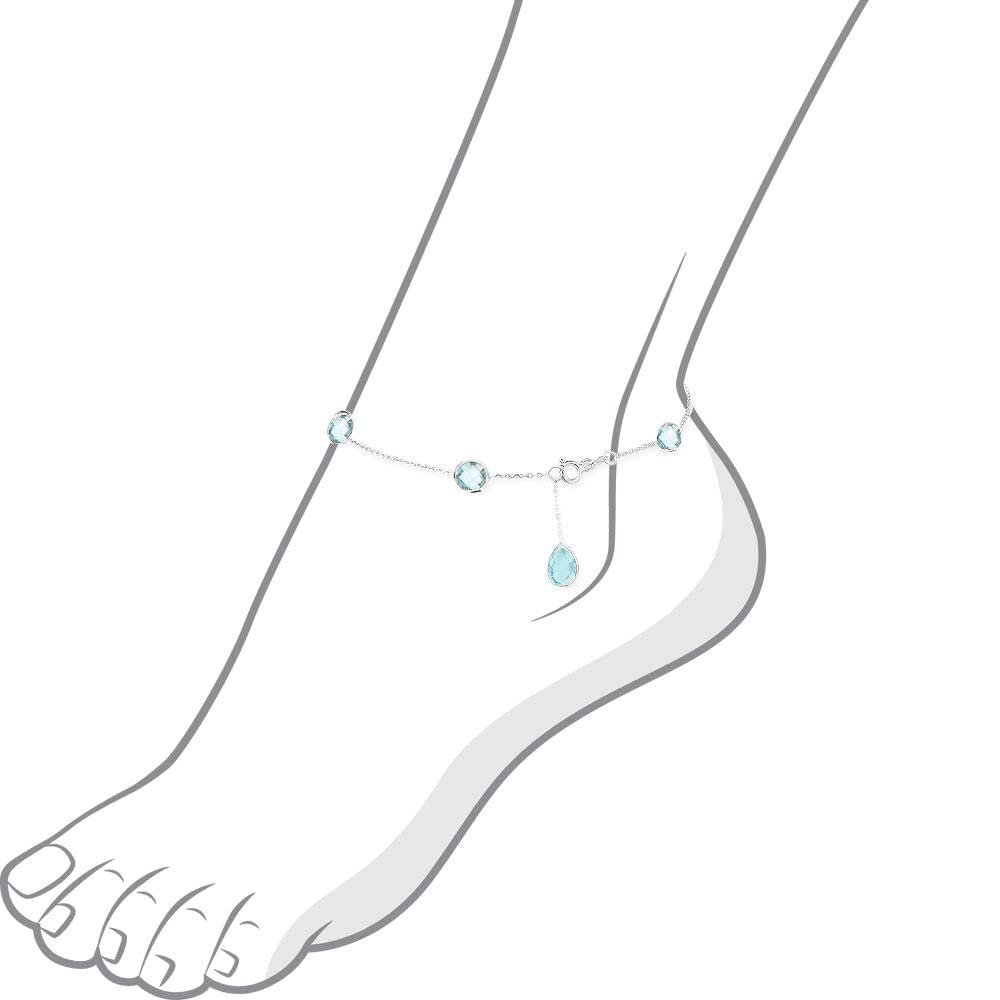 14K White Gold Anklet With Blue Topaz Pear Shaped Drop 11 Inches quantity