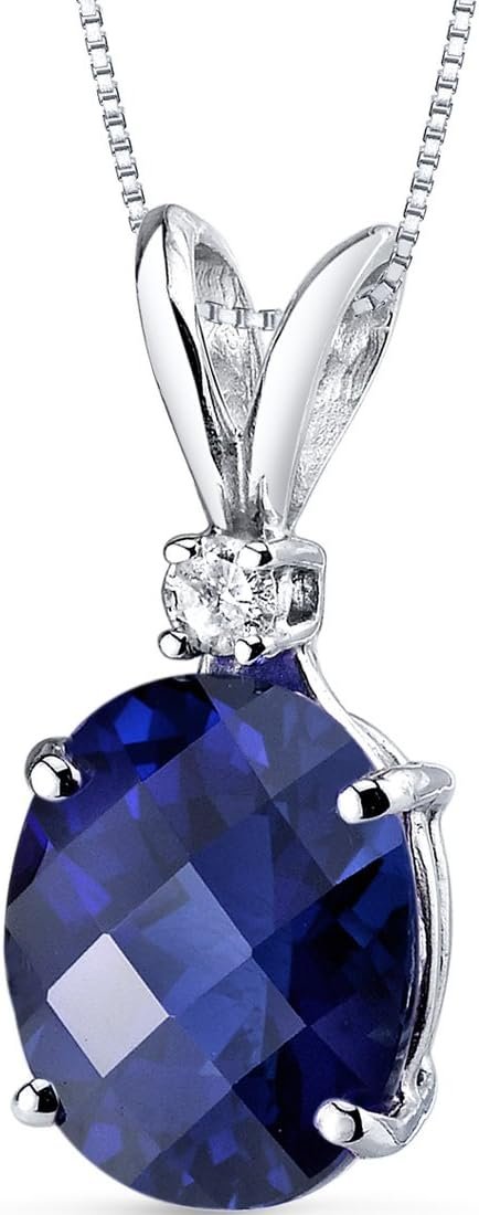 - QUALITY CREATED BLUE SAPPHIRE – Cut from the finest material, Oval Shape, 10x8mm, 3.60 Carats, rich Ceylon Blue hue with a brilliant sparkle. Accented with Genuine Diamond, 0.05 Carat, H-I, SI-I Clarity.