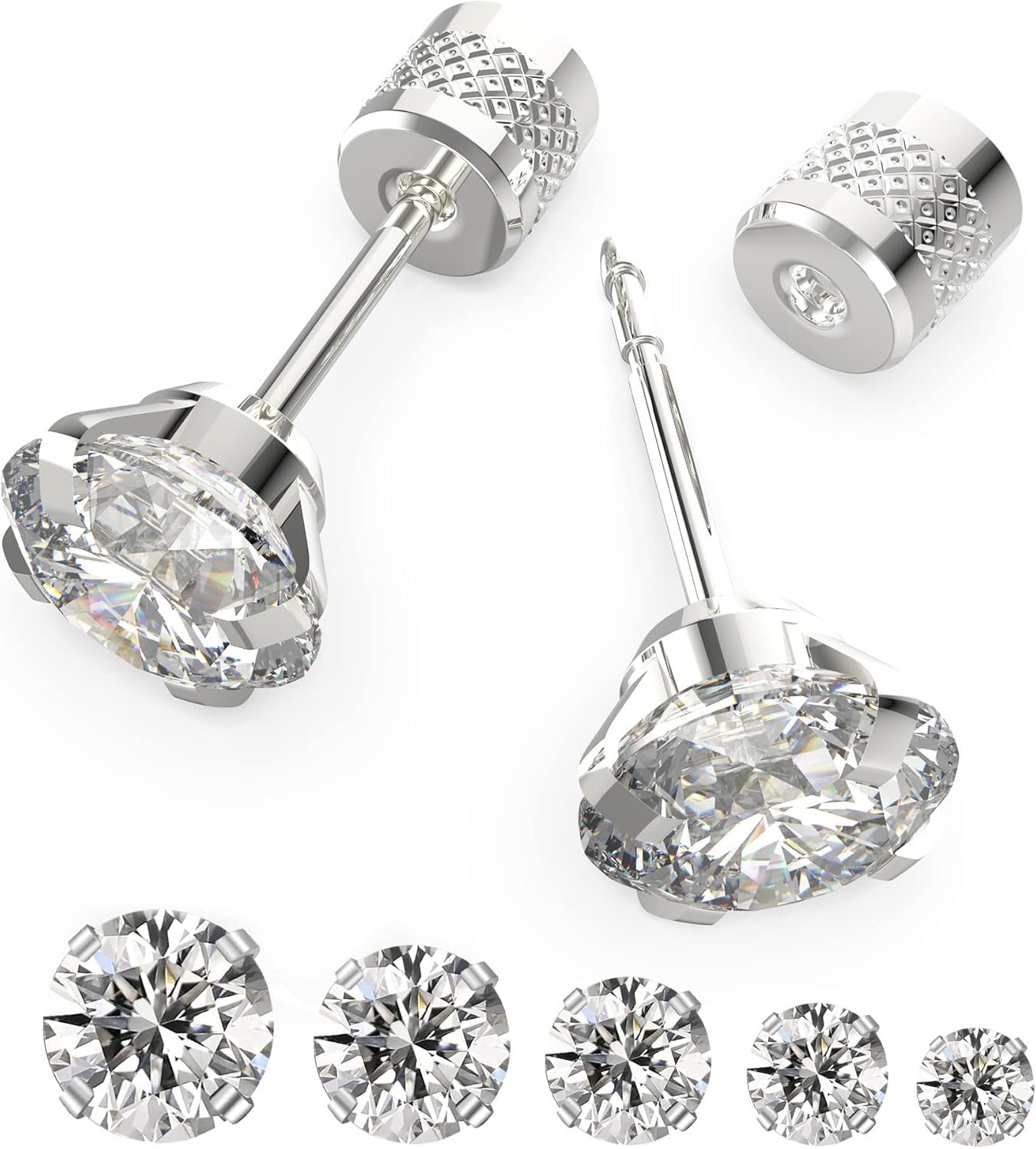 - 5 Pairs Flat Back Stud Earrings Set: You will receive 5 pairs of CZ stud earrings, 5 sizes, 4mm/5mm/6mm 7mm/8mm.suitable for first hole, second hole, third hole. and also can be used as cartilage earring set for multiple piercings.