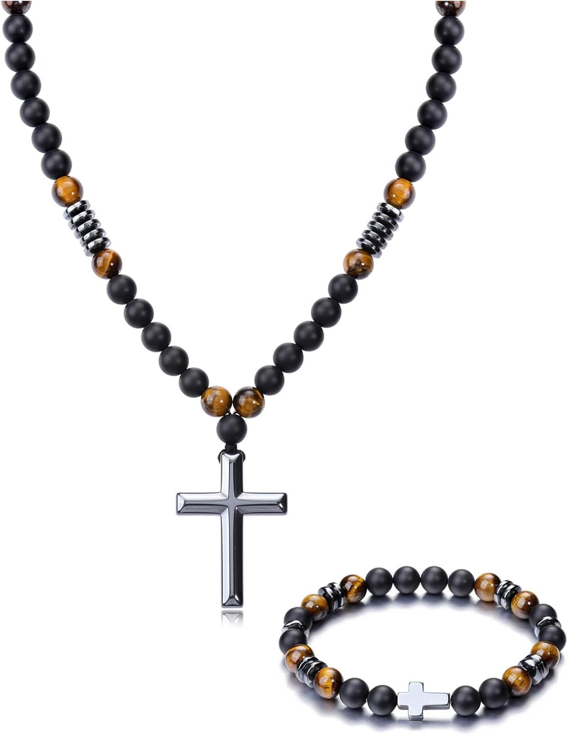- Great Gifts: You will receive 1pc 8mm Natural Stone Necklace& 1pc Cross Bracelet. Each order pakcage in a Elegant Gift Box and Velvet Pouch. This Necklace Set is a perfect for mens&womens for any occasion to change your style and mood. Ideal gifts for Valentines Day, Mothers Day, Christmas, Engagement, Vacation, Anniversary Day and Birthday to your girlfriend, boyfriend, wife, father, mom and daughter and ourselves.