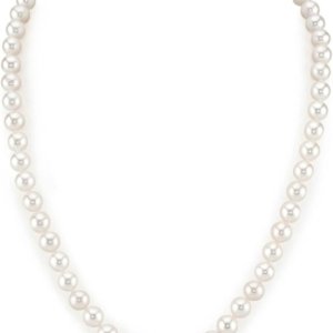 Real Pearl Necklace for Women with AAA+ Quality Round White Freshwater Genuine Cultured Pearls | 14K Gold Clasp White Gold Pearl Gifts for Christmas, Holidays and Anniversary