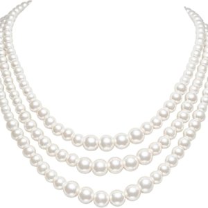 Long Pearl Necklace 70inch Faux White Pearl Beads Multi Strand Layering fake Pearl Necklaces for Women Bridal Wedding Party Jewelry