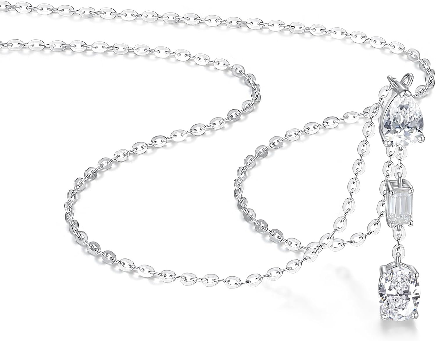 - Exceptional Moissanite Quality: The necklace features a premium moissanite stone,0.8CT pear cut&0.5CT emerald cut&1CT oval cut,total weight 2.3 carats,lab-created with D color and clarity, offering incredible brilliance and fire. Each stone is -certified for authenticity, ensuring the highest standards of quality and craftsmanship.