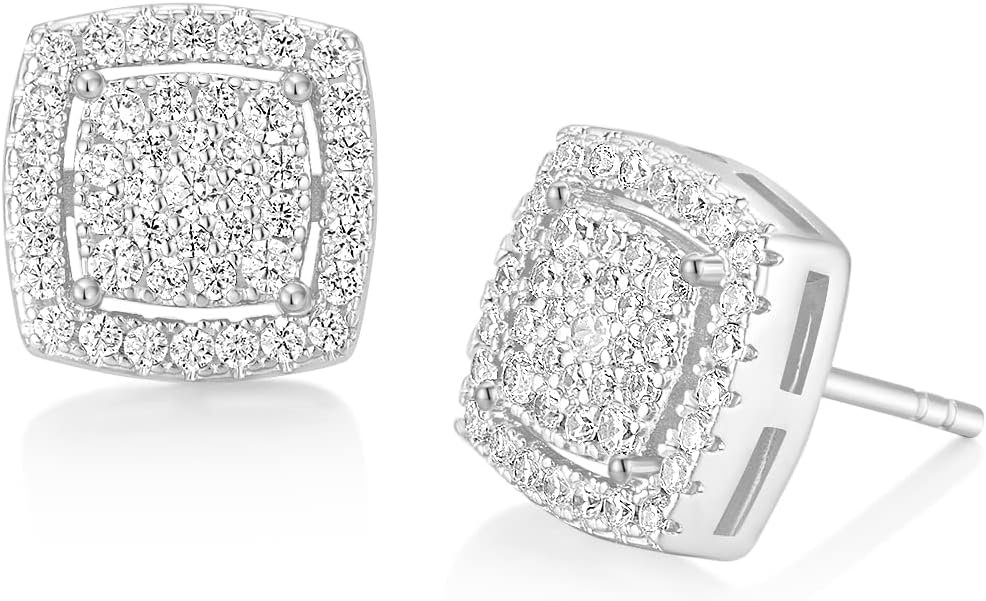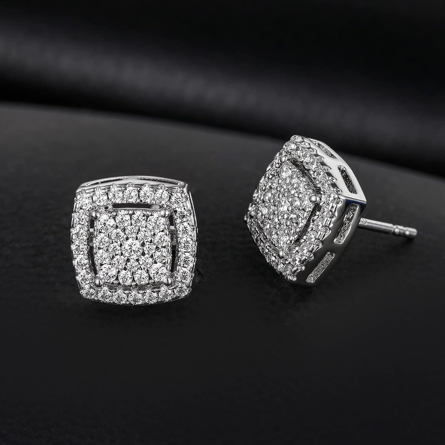 Stud Earrings for Men Women Silver Gold Plated Layered Iced Out Sterling Silver Cz Earrings Hypoallergenic