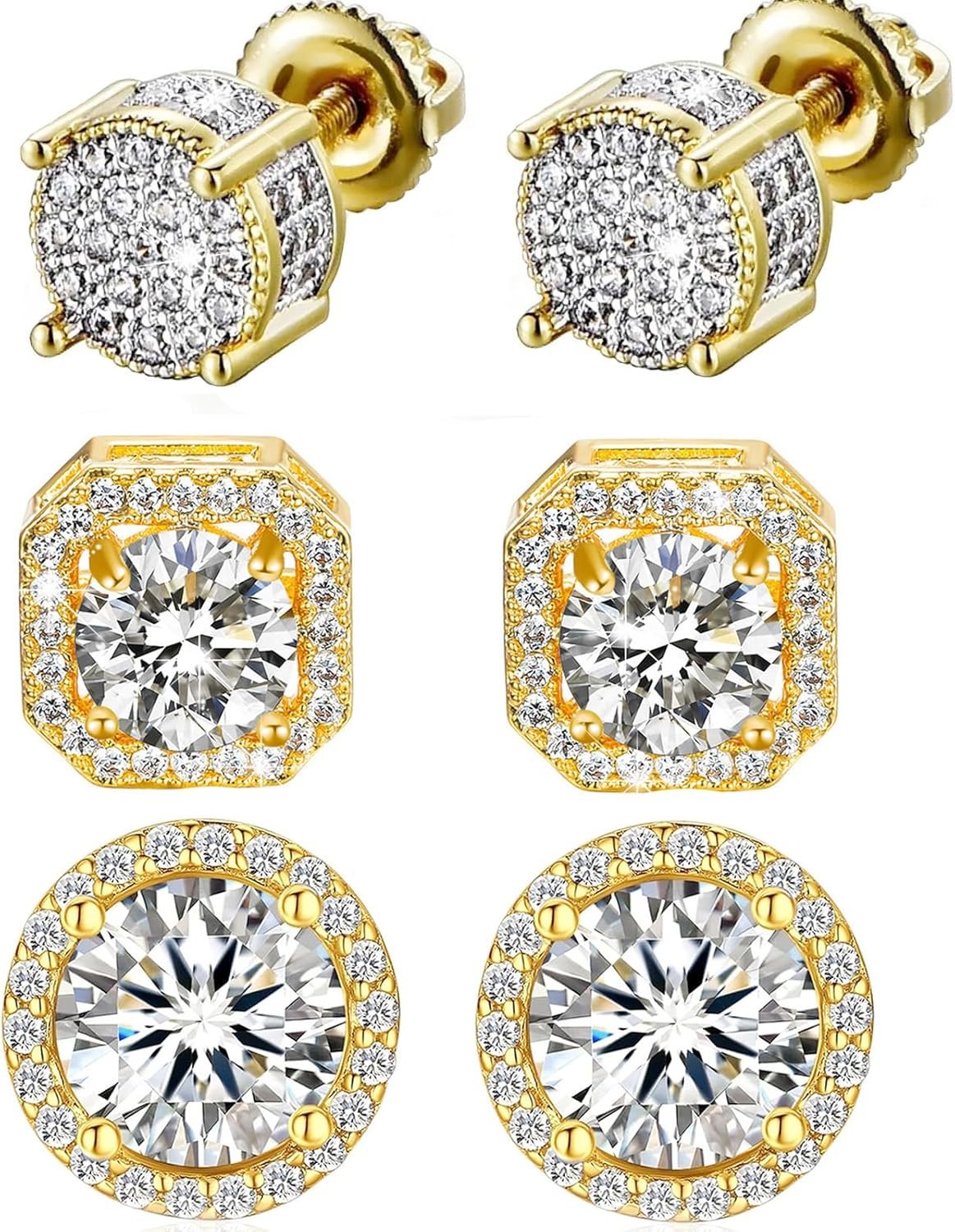- Stud Earrings: 3 pairs of different styles of cubic zirconia earrings can be freely paired, with 2 colors to choose from. Unisex design, suitable for men and women of all ages.
