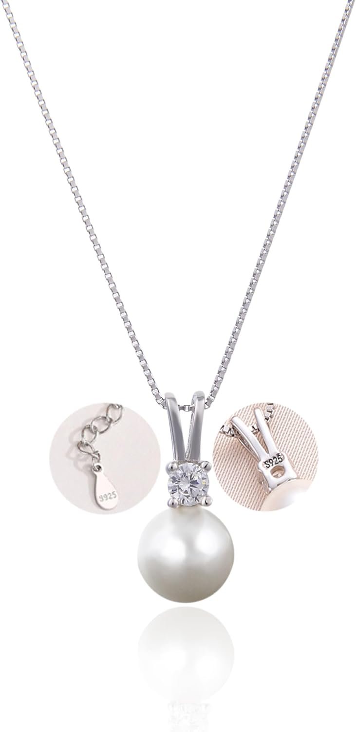 - 💕Simple pearl necklace silver pendant , Buckle of 925 silver with sterling silver pearl pendant necklace demonstrates the identity of the nobility, allowing you to attract more people’s attention at the dance party.